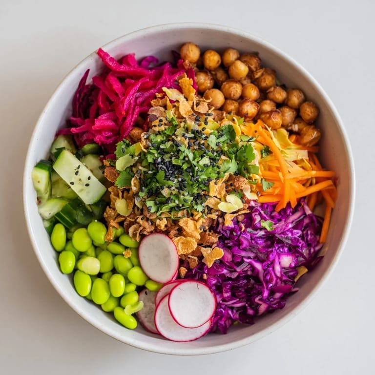 - Top each bowl with roasted chickpeas, rice puffs or cornflakes, pumpkin seeds, and sliced radishes for crunchy texture.