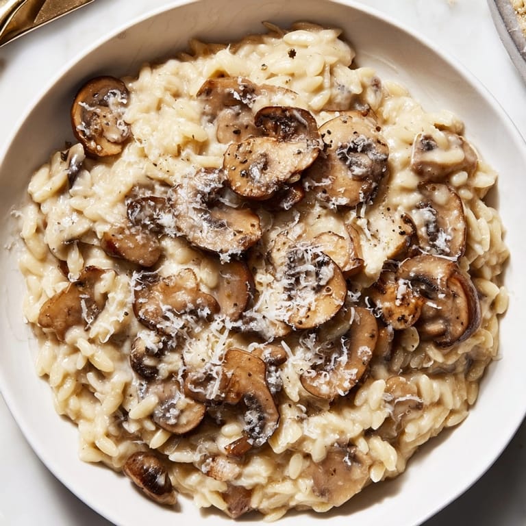 While not traditional Italian risotto this dish is inspired by Northern Italian flavors that merge pasta and mushrooms into creamy irresistible comfort food. Orzo is a pantry staple in Mediterranean cooking and adapts effortlessly to quick creamy recipes like this one.