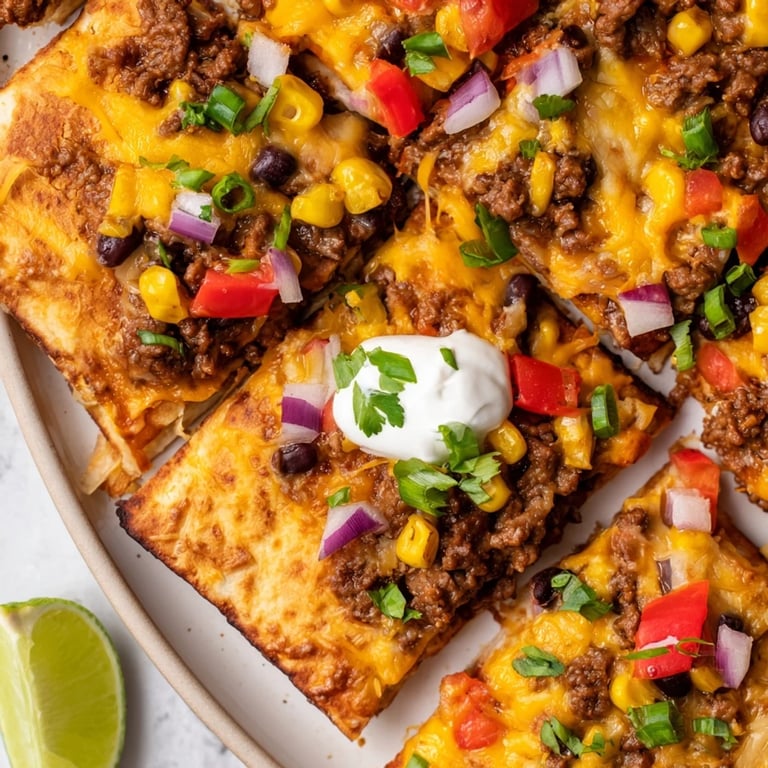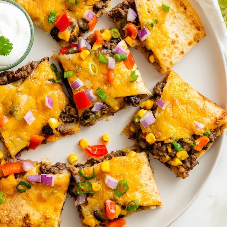To get the perfect crispy quesadilla, make sure to weigh down the top with another sheet pan during baking. This helps the tortillas seal around the filling and prevents puffing. Also, draining the beef well before mixing with veggies keeps the quesadillas from becoming soggy. Using a mix of cheddar and Monterey Jack cheese creates a rich, melty texture that enhances the flavor balance beautifully.