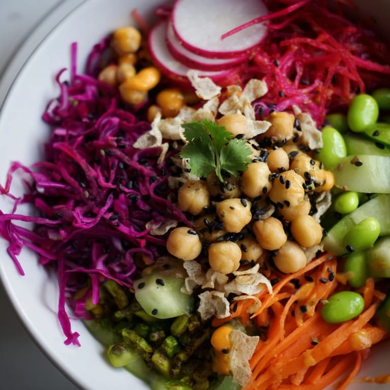 - Top each bowl with roasted chickpeas, rice puffs or cornflakes, pumpkin seeds, and sliced radishes for crunchy texture.